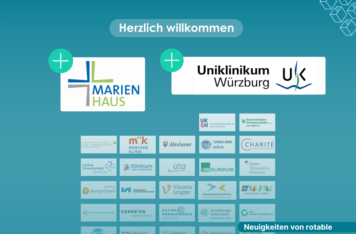 Mit dem Universitätsklinikum Würzburg und dem Marienhaus Klinikum Mainz entscheiden sich zwei weitere renommierte Akteure der deutschen Krankenhauslandschaft für rotable, die führende SaaS-Lösung für die digitale ärztliche Rotations- und Einsatzplanung.